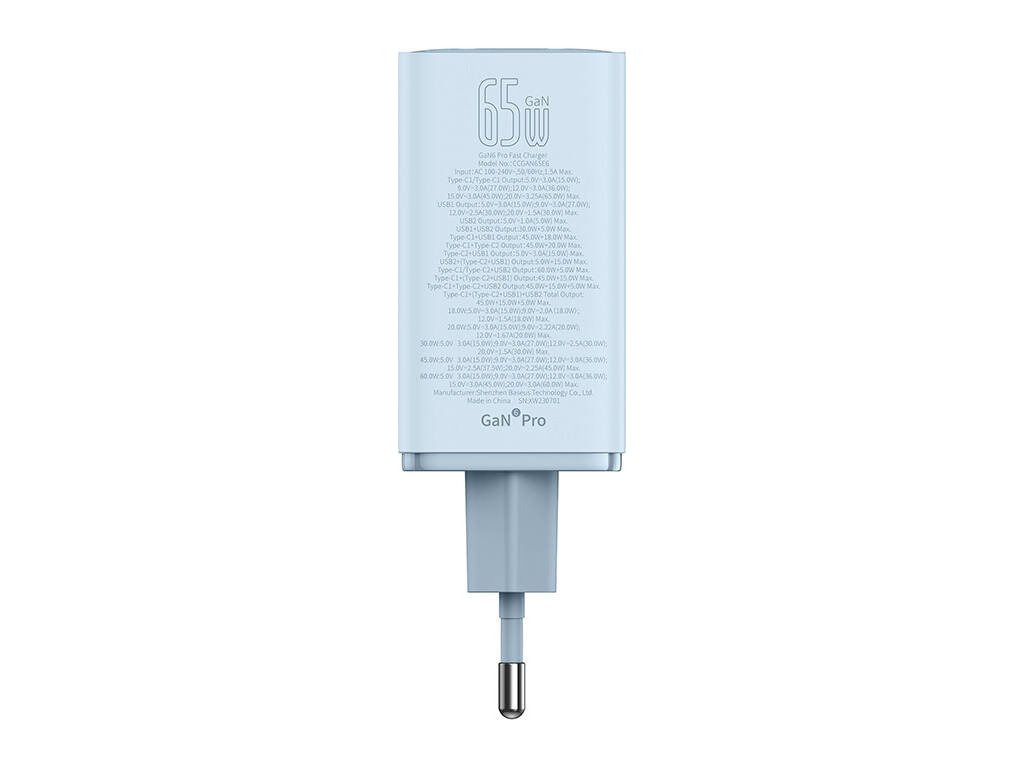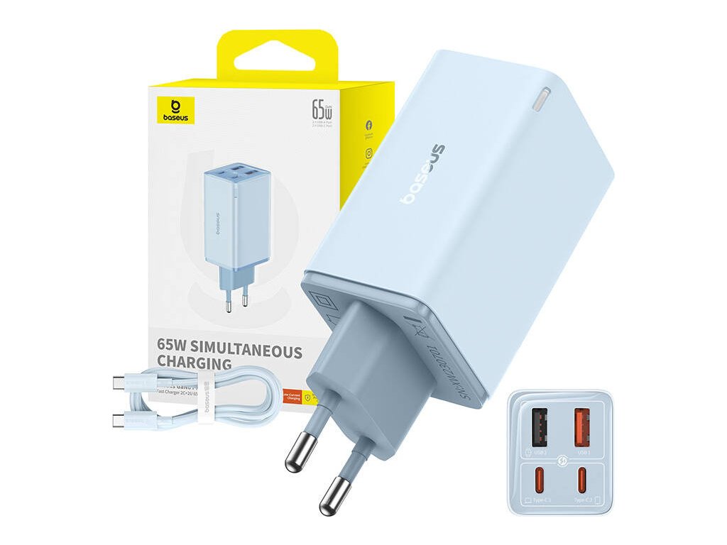 Baseus GaN6 Pre nástenná nabíjačka, 2xUSB-C + 2xUSB, 65W (modrá)