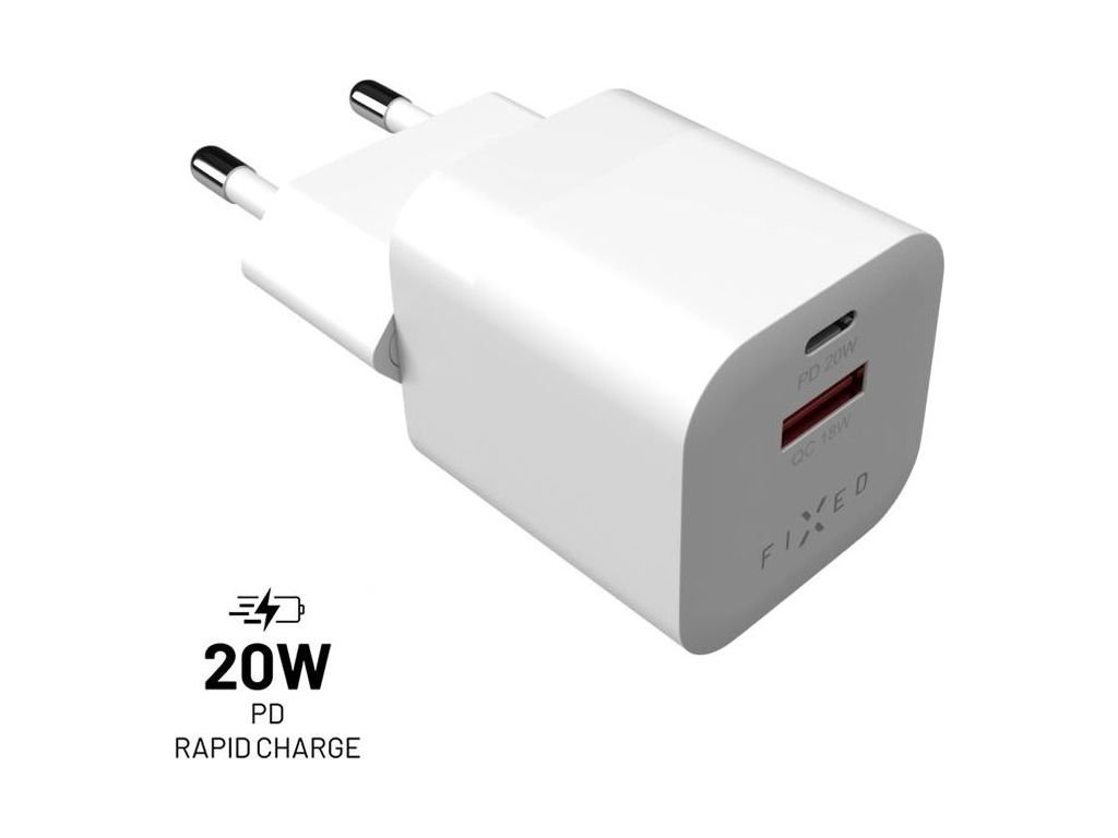 Sieťová nabíjačka FIXED Mini s USB-C a USB výstupom, podpora PD a QC 3.0, 20W, biela
