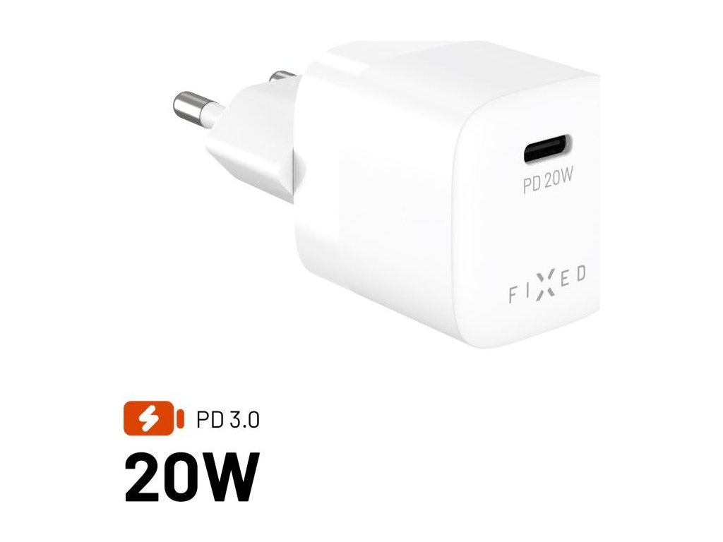 Sieťová nabíjačka FIXED Mini s USB-C výstupom a podporou PD, 20W, biela