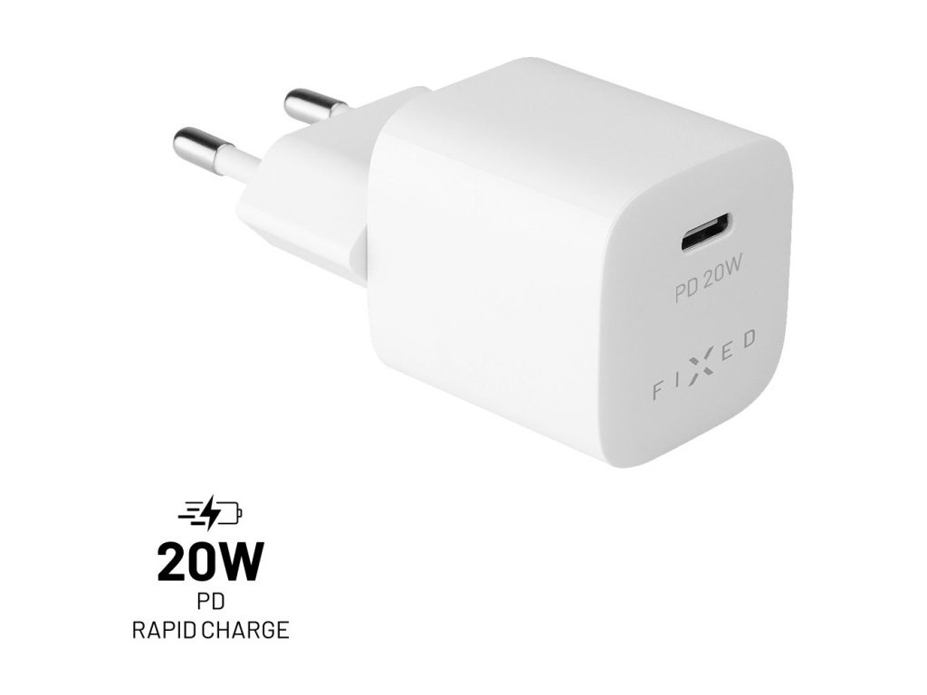 Sieťová nabíjačka FIXED Mini s USB-C výstupom a podporou PD, 20W, biela