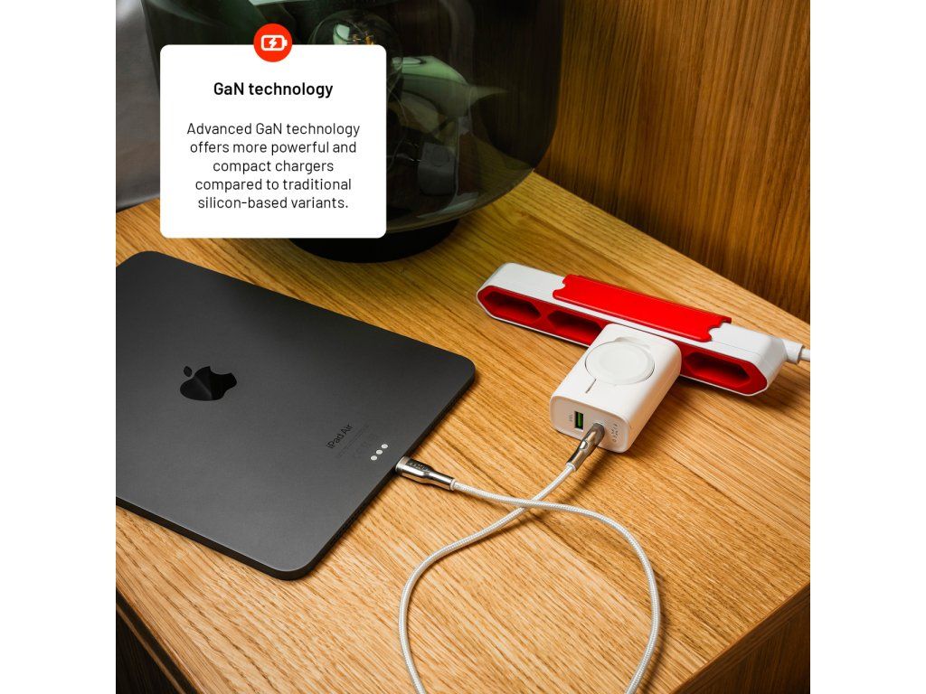 - GaN technológia – menšie rozmery s vyšším výkonom a efektivitou nabíjania