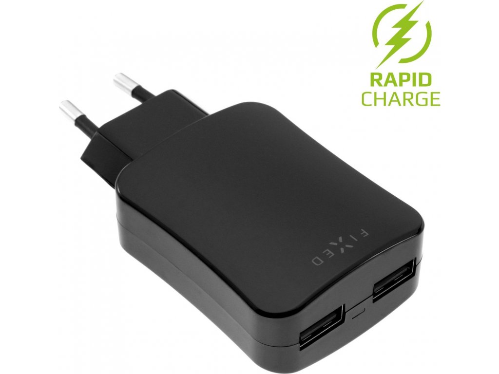 Sieťová nabíjačka FIXED s 2xUSB výstupom, 24W (2x2,4A), čierna