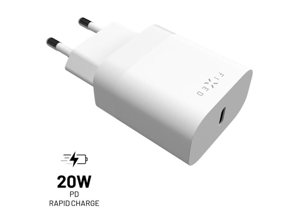 Sieťová nabíjačka FIXED s USB-C výstupom a podporou PD, 20W, biela