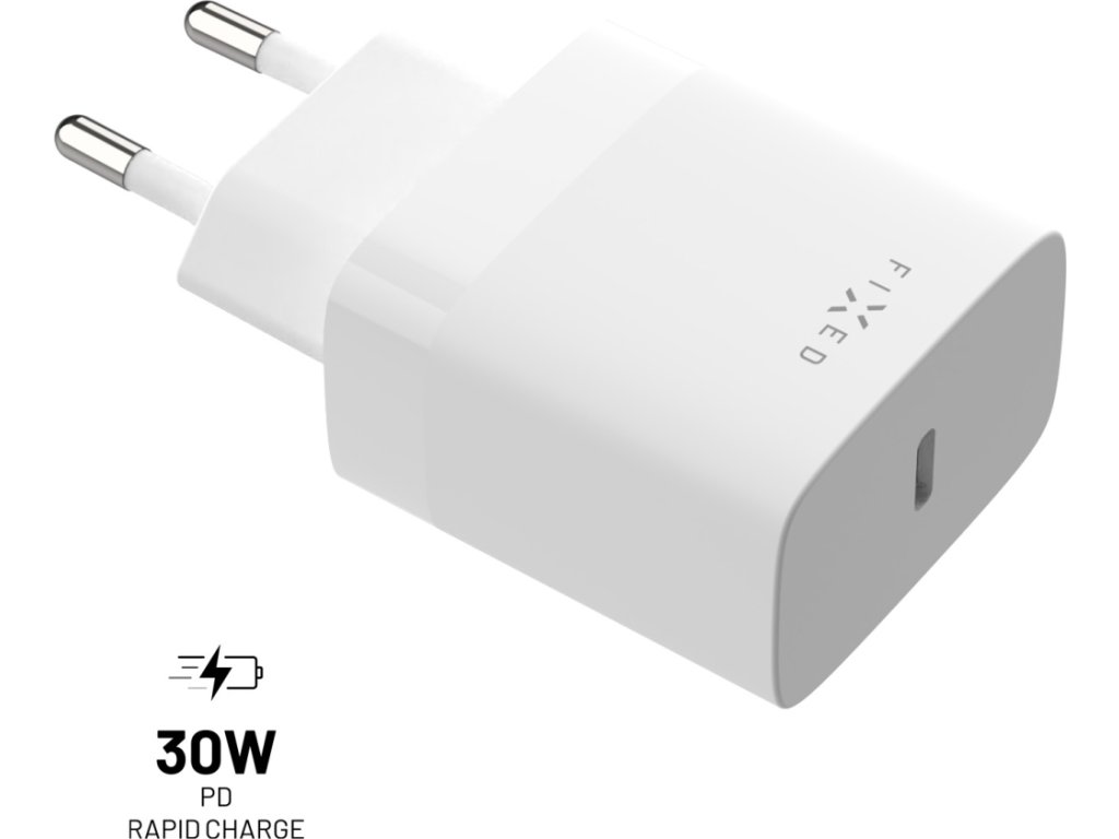 Sieťová nabíjačka FIXED s USB-C výstupom a podporou PD, 30W, biela
