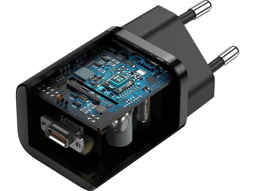 Baseus Super Si Quick Charger 1C Kompaktná nabíjačka Baseus 1C umožňuje rýchle nabíjanie zariadenia s výkonom až 20 W.