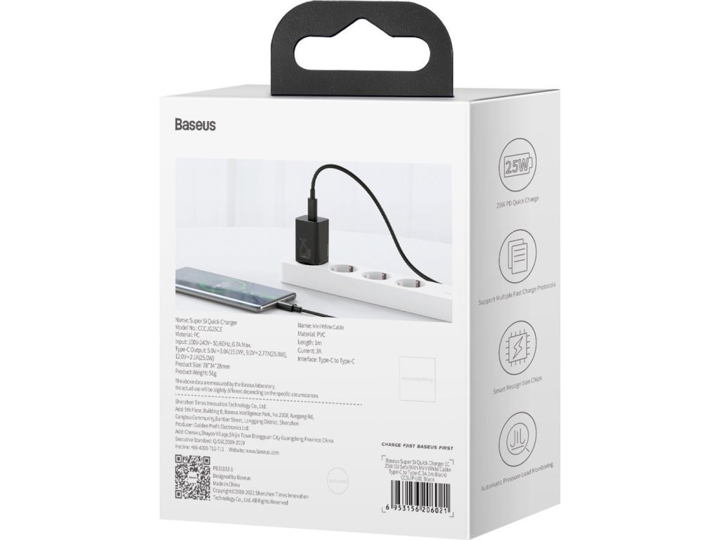 Baseus Super Si Quick Charger 1C 25W s káblom USB-C pre USB-C 1m (čierna)