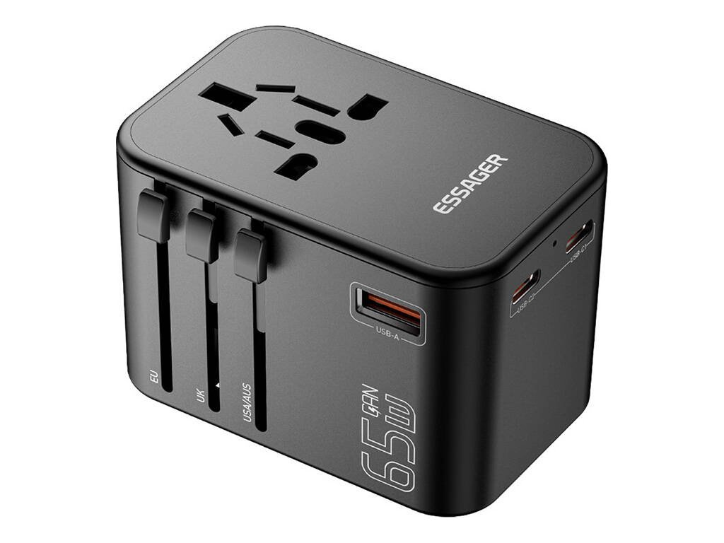 Nabíjačku Essager môžete používať po celom svete. Univerzálny zástrčkový adaptér pokrýva americké, austrálske, britské a európske normy a umožňuje ľahké prispôsobenie miestnym zásuvkám. Mechanizmus push-and-release umožňuje jednoduchú konverziu zástrčky. Vďaka kompaktnému dizajnu (52,6 x 82,9 x 54,7 mm) nezaberie produkt vo vašej cestovnej taške veľa miesta.