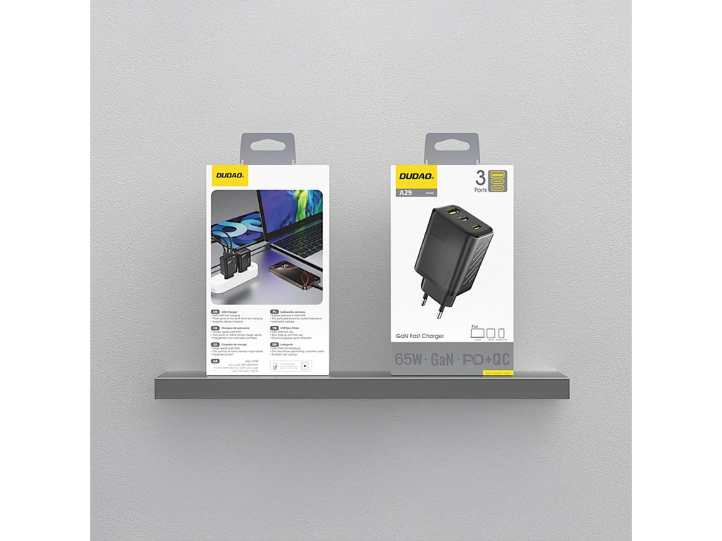 Dudao A29 je kompaktná a efektívna nástenná nabíjačka s výkonom až 65 W, ktorá vám umožňuje rýchlo napájať viacero zariadení súčasne. Vďaka dvom portom USB-C a jednému portu USB-A poskytuje flexibilitu pri pripájaní smartfónov, tabletov a notebookov. Vďaka technológii GaN (nitrid gália) nabíjačka pracuje stabilne, generuje menej tepla a ponúka vyššiu energetickú účinnosť. Vstavaný čip E-Mark inteligentne rozpozná pripojené zariadenie a upraví parametre nabíjania pre maximálnu bezpečnosť. Je to praktické riešenie doma aj na cestách.