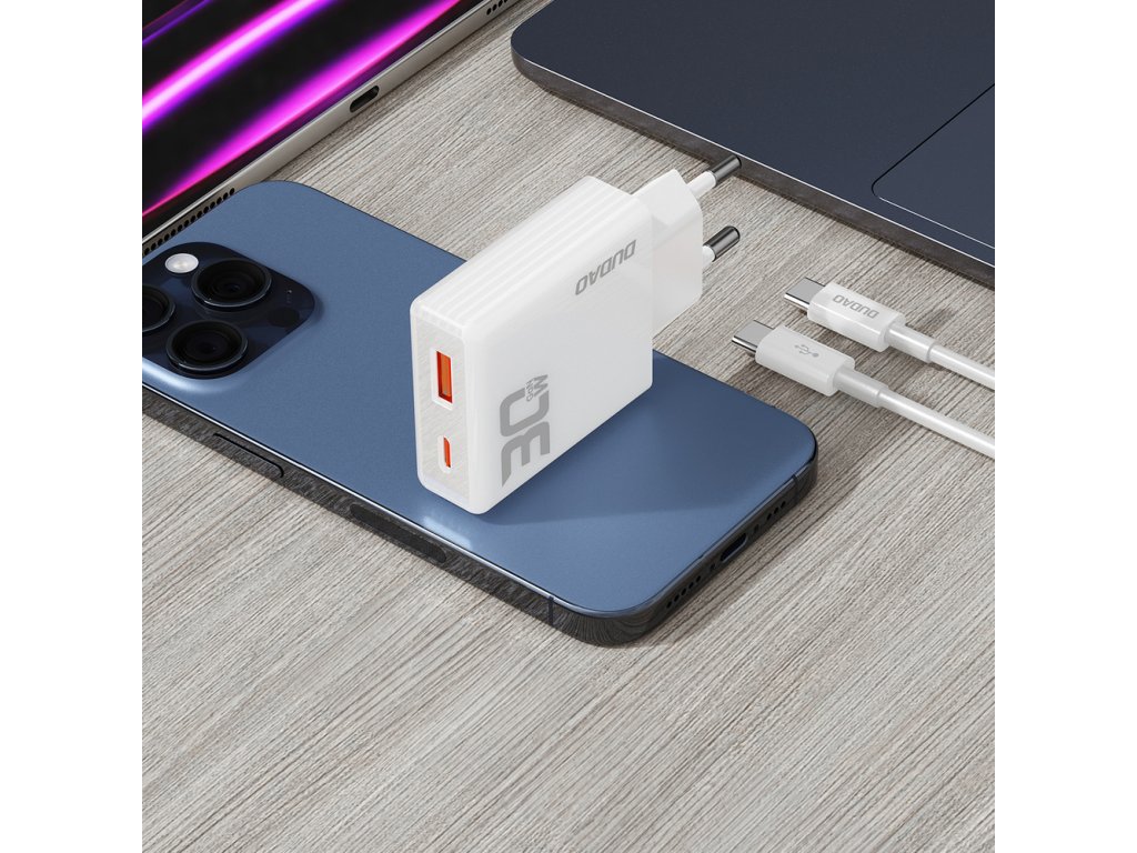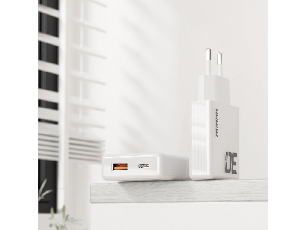 Nabíjačka do steny Dudao A20EU s konektorom USB-A, maximálny výkon 18W + kábel USB-A - USB-C - biely Nabíjačka do steny Dudao A20EU je praktickým riešením pre každodenné použitie.