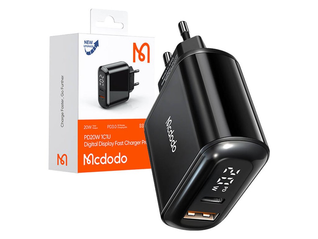 Ensure fast and safe charging of your devices. The Mcdodo CH-7170 charger vykonáva rýchle charging a features PD 20W output power. It features dva porty a digitálny displej - all for your convenience!
