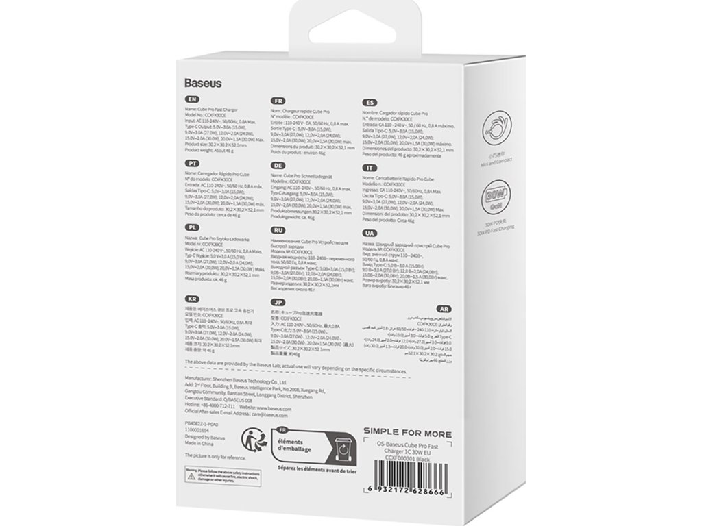 Nabíjačka do siete Baseus Cube Pro 30W USB-C – čierna