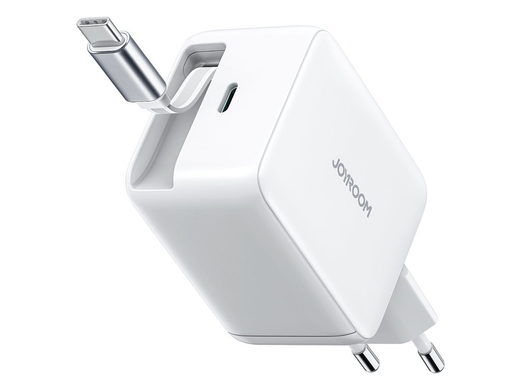 Nabíjačka Joyroom JR-TCL06 67W GaN do steny so vstavaným zasúvacím káblom USB-C – biela