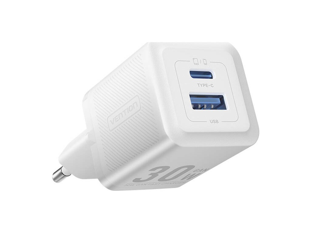 Nástenná nabíjačka, Vention, FEQW0-EU, USB-C + USB-A, 30W/30W, GaN (biela)