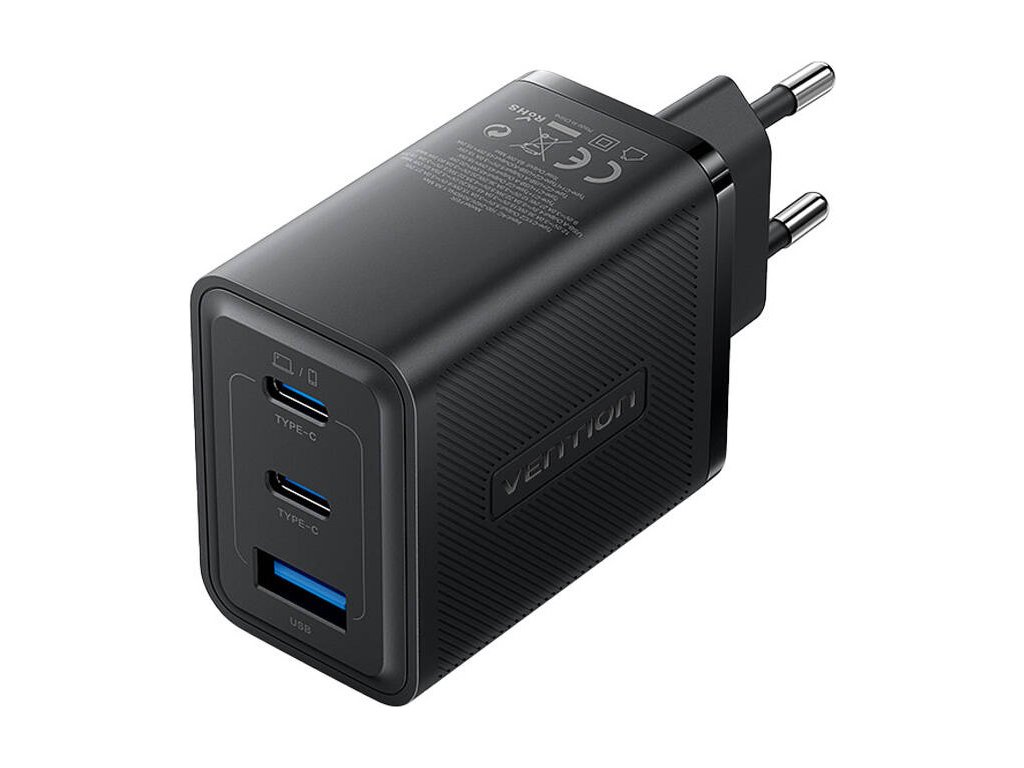 Napájacia nabíjačka, Vention, FERB0-EU, 2xUSB-C, USB-A, 65W/65W/30W, GaN (čierna)