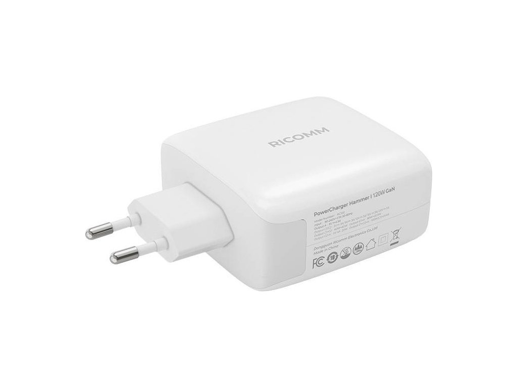 Nástenná nabíjačka 120W GaN Ricomm RC1201 EU, 1xUSB-A, 2xUSB-C + 2,1m kábel USB-C