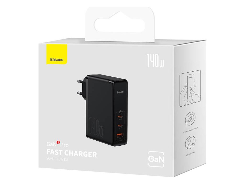 Nástenná nabíjačka Baseus GaN5 Pro 2xUSB-C + USB, 140 W (čierna)