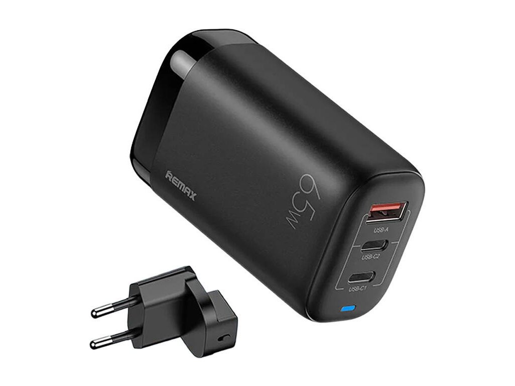 Sieťová nabíjačka Remax, RP-U55, 2x USB-C, USB, EU 65W (čierna)