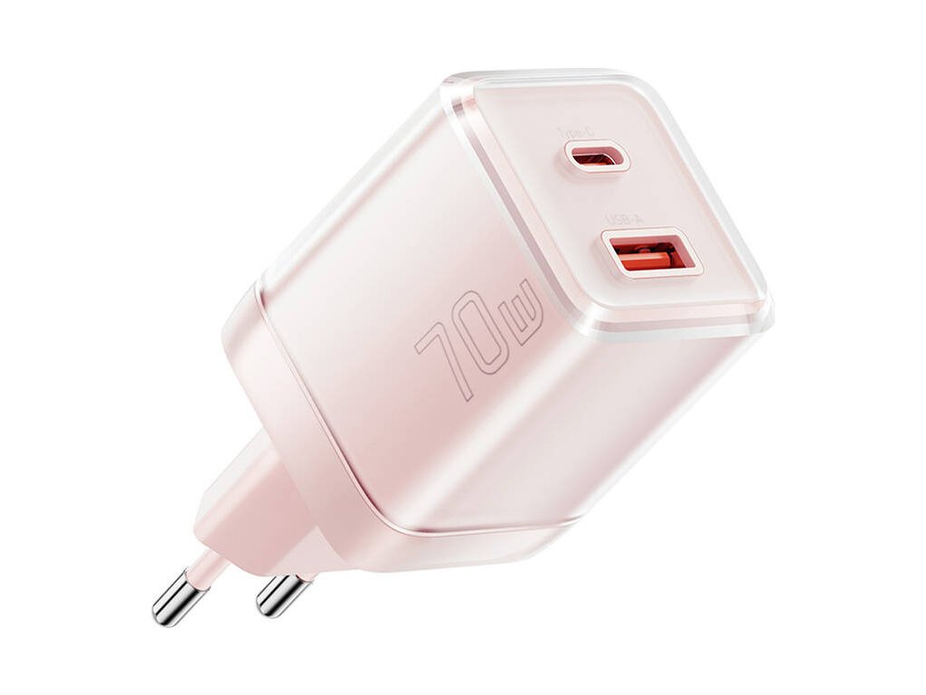 Nabíjačka Yueqi 70W GaN USB-C + USB-A (ružová).