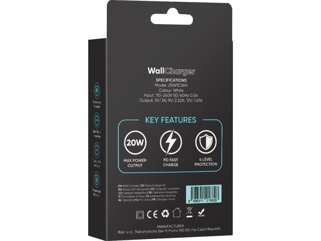 S cestovnou nabíjačkou OBAL:ME si môžete byť istí, že vaše elektronické prístroje budú v bezpečí a vždy pripravené na použitie. Hlavné funkcie: Prepäťová ochrana S našou cestovnou nabíjačkou budete mať pokoj vedomie, že vaše zariadenia sú chránené pred neočakávanými prepätiami. Ochrana proti skratu S našou nabíjačkou nebudete musieť robiť starosti ohľadom skratov, ktoré by mohli poškodiť vaše elektronické prístroje. Nadprúdová ochrana Naša nabíjačka je navrhnutá tak, aby chránila vaše zariadenie pred nadprúdmi a zaistila rýchle, ale bezpečné nabíjanie. Teplotná ochrana Vďaka vstavanej teplotnej ochrane môžete byť istí, že vaše zariadenia zostanú v bezpečí pred nadmerným zahrievaním. Štvorstupňová ochrana S kombináciou všetkých týchto ochranných prvkov ponúka naša cestovná nabíjačka štvorstupňovú ochranu, ktorá vám dáva pokoj a istotu počas nabíjania vašich zariadení. Nabíjačka je vyrobená z kvalitných materiálov a spĺňa všetky potrebné bezpečnostné normy, aby zaistila bezproblémové nabíjanie. Špecifikácia: - štvorstupňová ochrana pred prepätím, skratmi, nadprúdom a prehriatím - Input: 100-240V, 50/60Hz 0.5A - Output: 5V/3A; 9V/2.22A; 12V/1.67A - Podpora nabíjania PD 2.0 a PD 3.0 - maximálny výkon: 20 W Obsah balenia: 1x USB-C nabíjačka do siete 1x manuál
