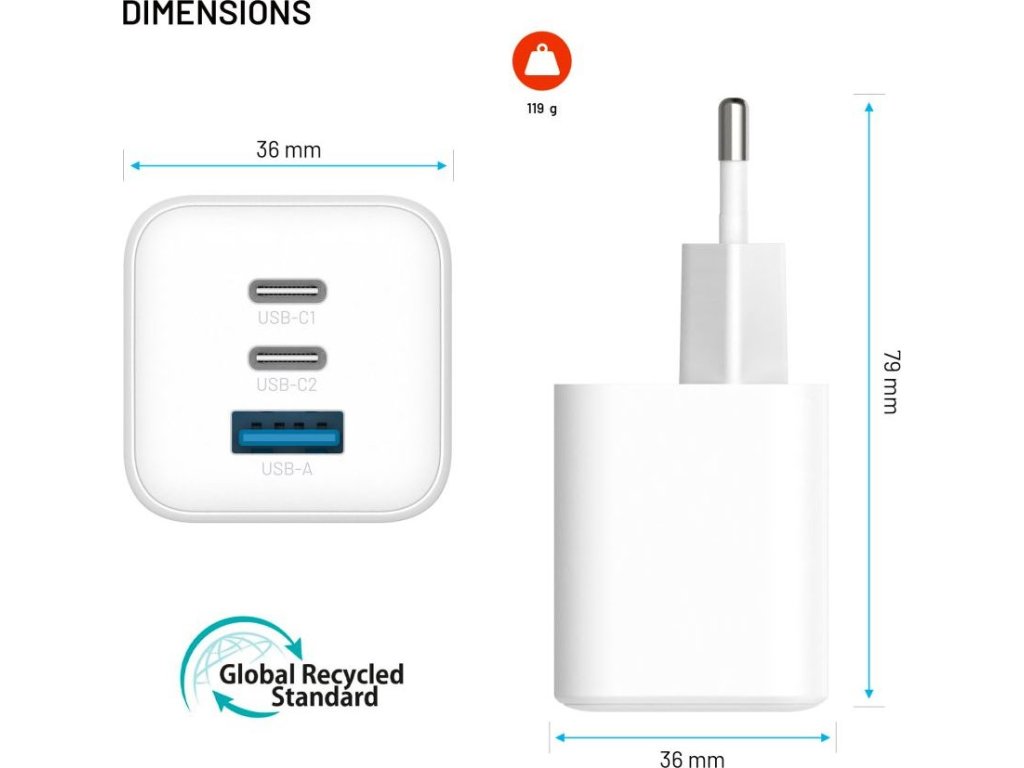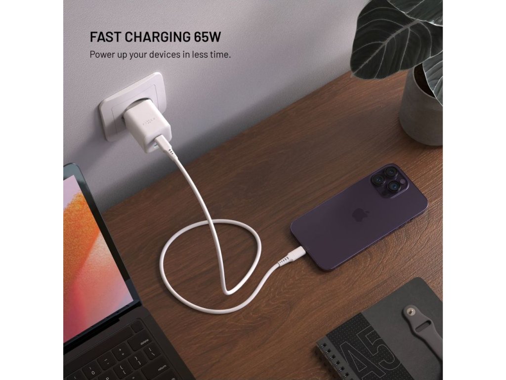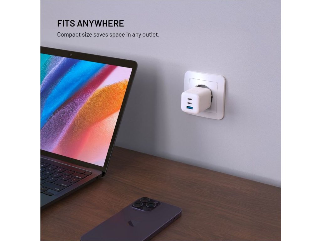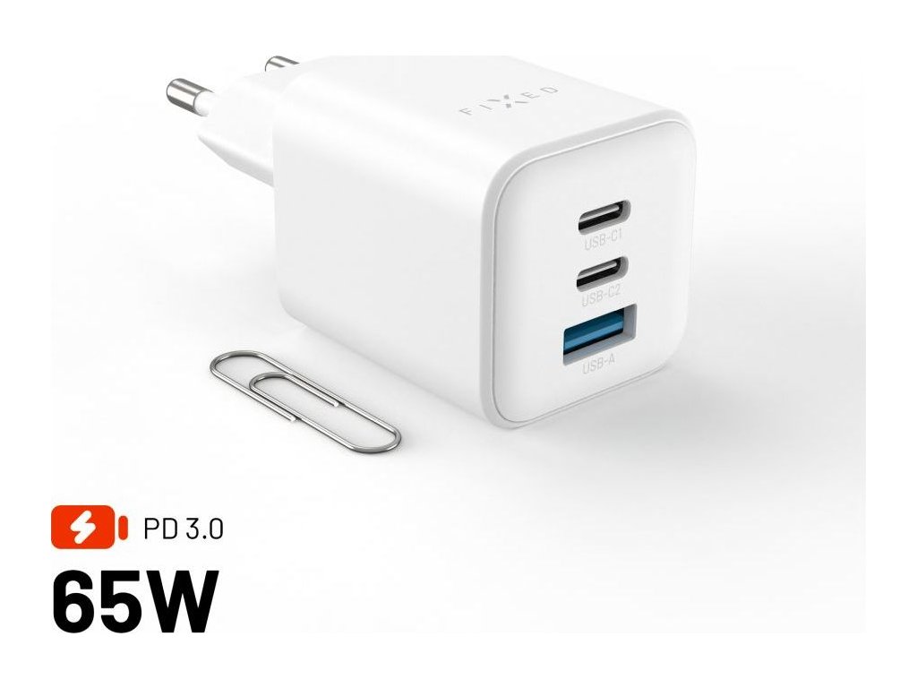 Sieťová nabíjačka Acefast A41, 2x USB-C + USB, GaN 65W (biela) Nabíjajte až 3 zariadenia súčasne a šetrite čas.