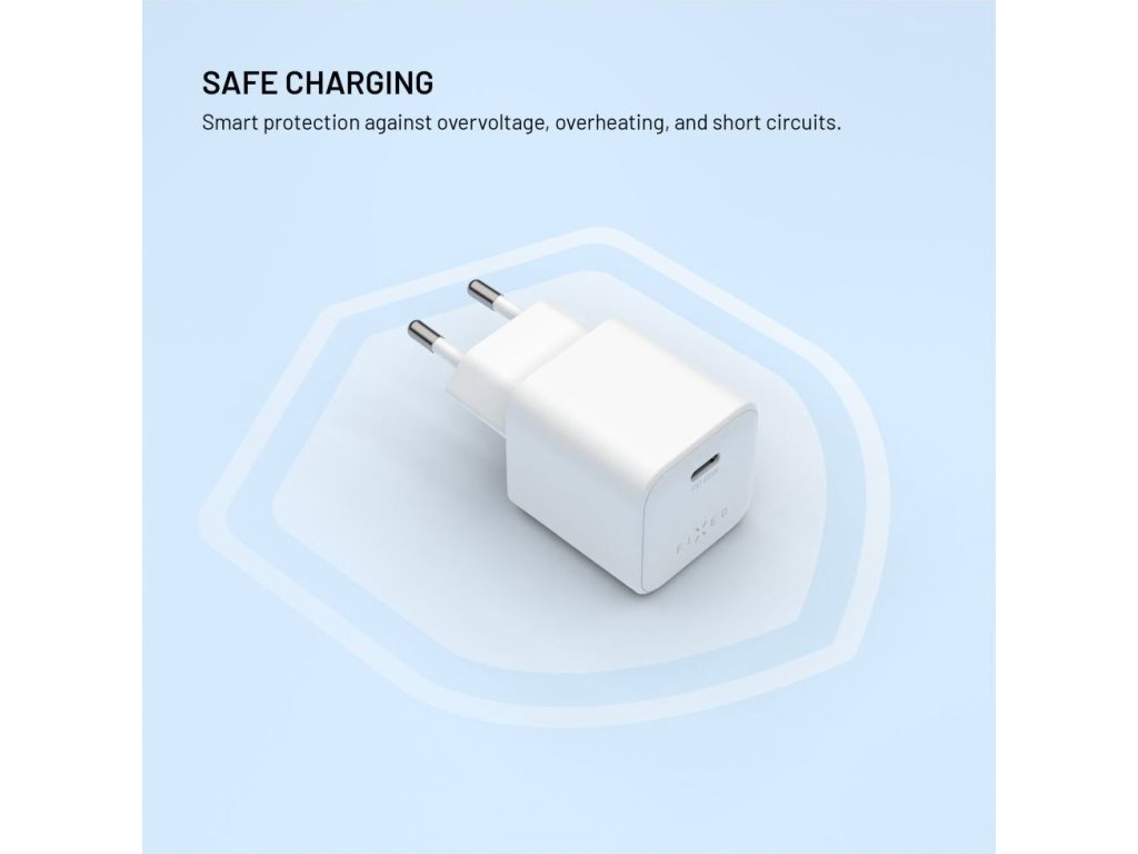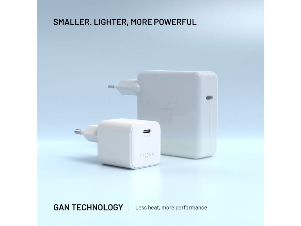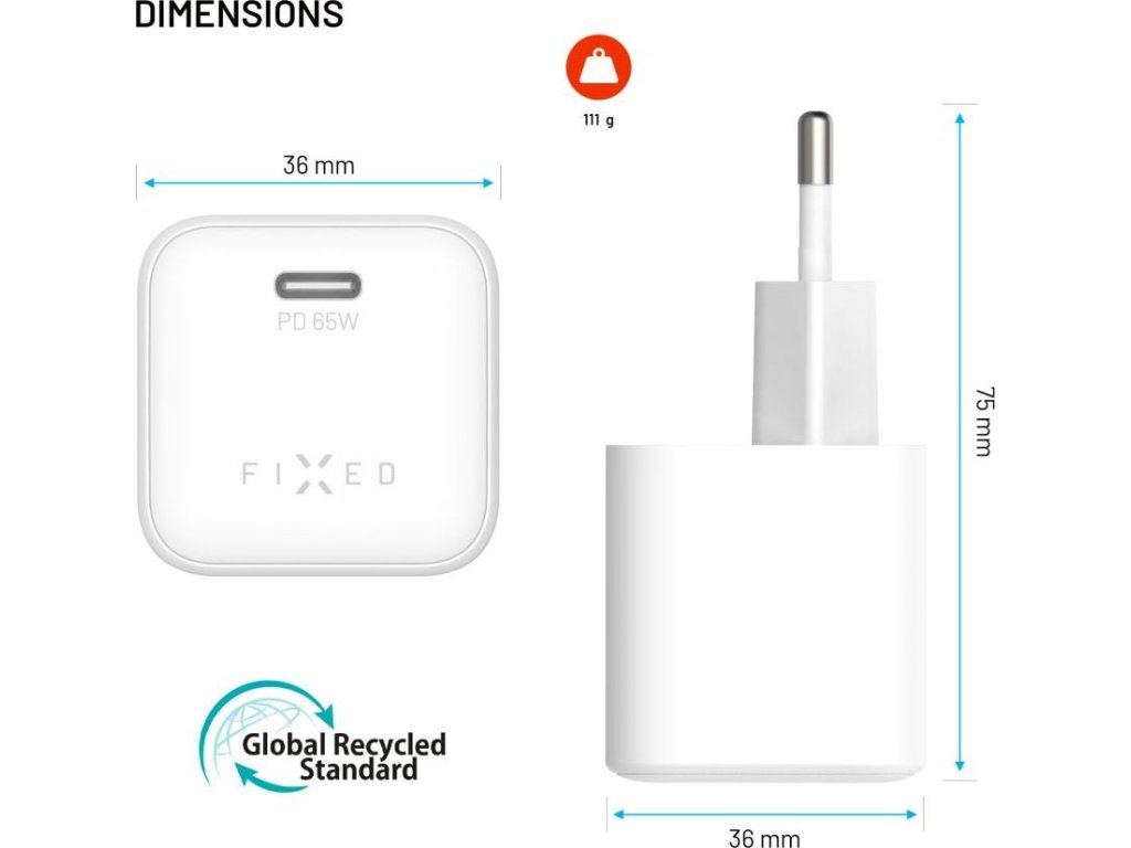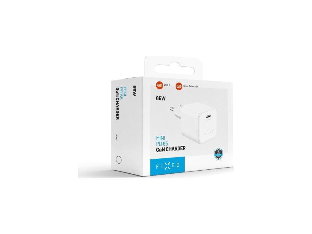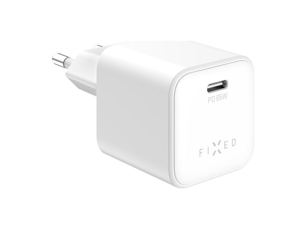 Sieťová GaN nabíjačka FIXED Mini s USB-C výstupom a podporou PD, 65W, biela