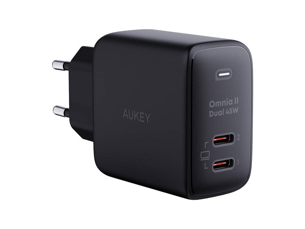 Aukey PA-B4T sieťová nabíjačka, 2xUSB-C, 45W (čierna)