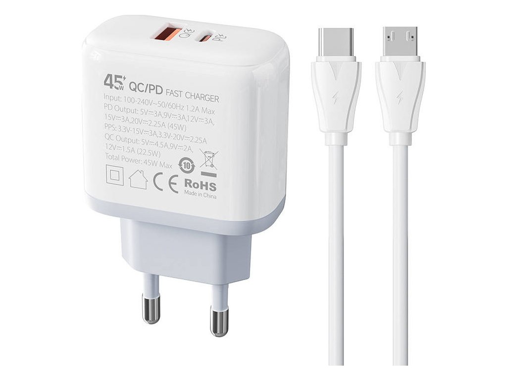 LDNIO A2526C USB, USB-C 45W sieťová nabíjačka + kábel MicroUSB 45W