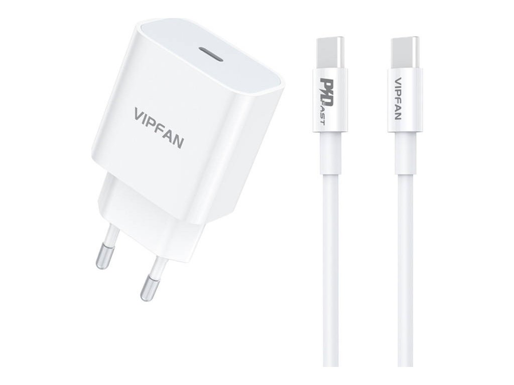 Sieťová nabíjačka Vipfan E04, USB-C, 20W, QC 3.0 + kábel USB-C (biela)