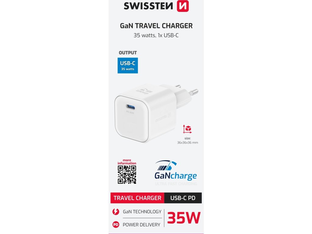 SWISSTEN SIEŤOVÝ ADAPTÉR GaN 1x USB-C 35W POWER DELIVERY BIELÝ