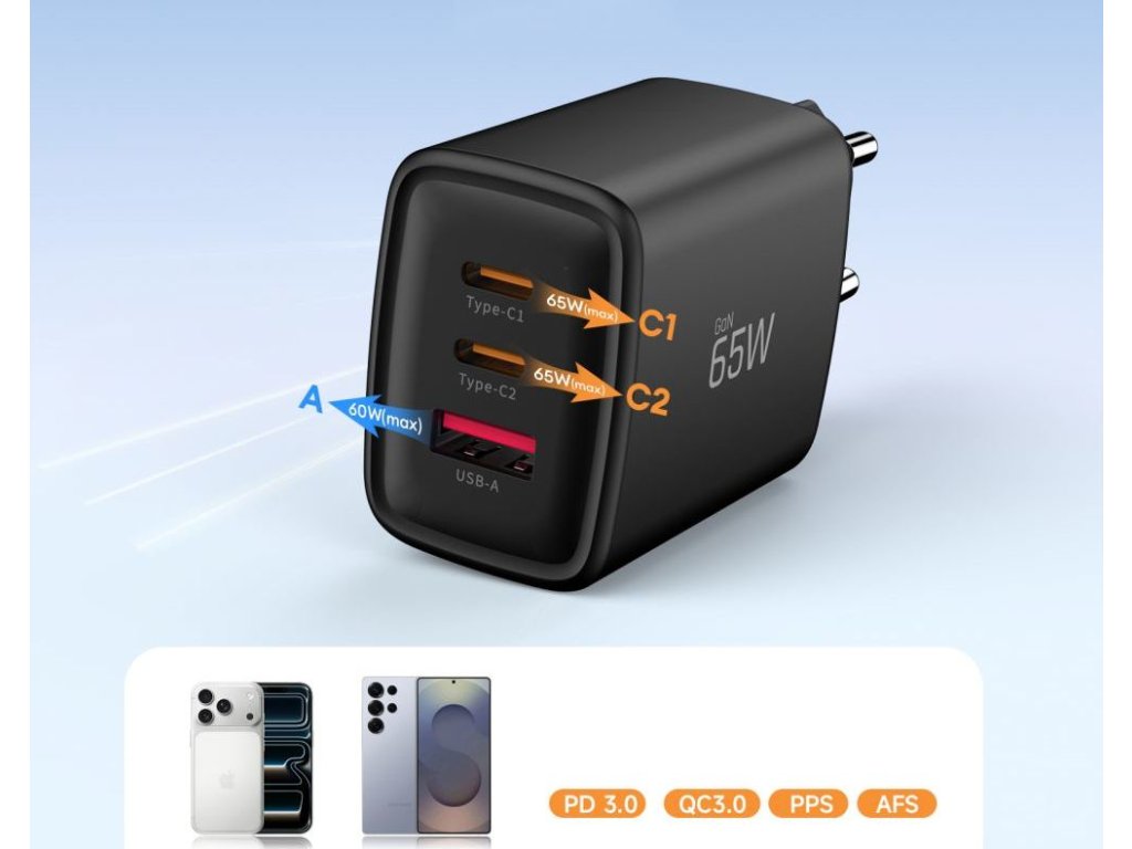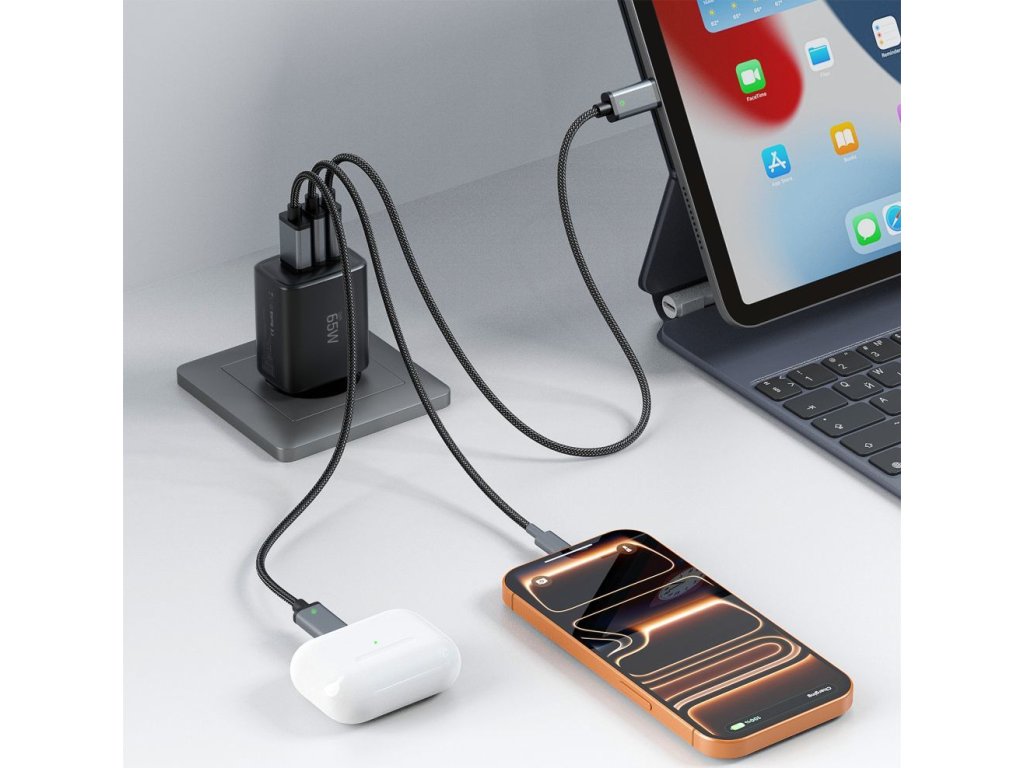 GaN Ultra 65W 2C1A Kábel CC Joyroom TCG01 Nabíjačka (čierna) Vyskúšajte si, že na nabíjanie až 3 zariadení naraz vám stačí iba jedna nabíjačka.
