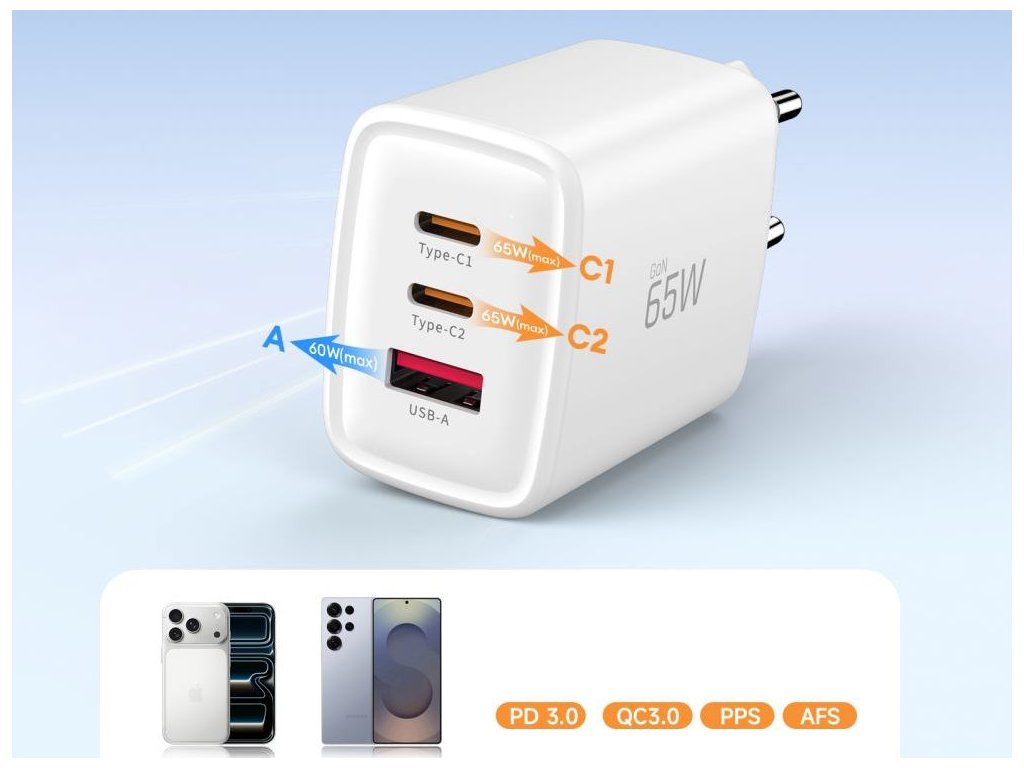 Nástenná nabíjačka Acefast A29 PD 50W GaN 2x USB-C (čierna) Užite si možnosť rýchleho nabíjania 2 zariadení súčasne.