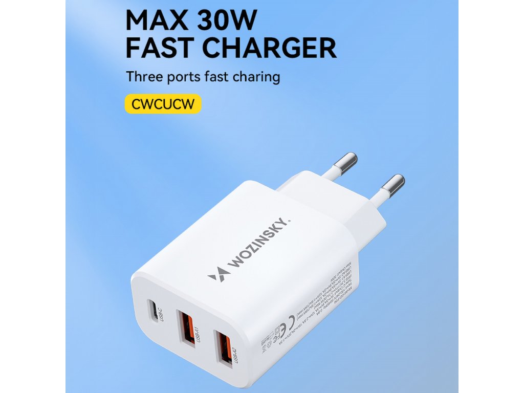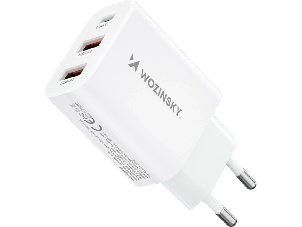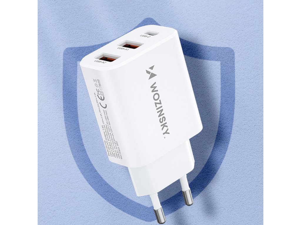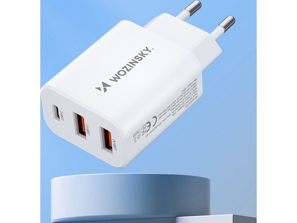 Nabíjačka Wozinsky CWCUCW 30W USB-C / 2 x USB-A do siete - biela