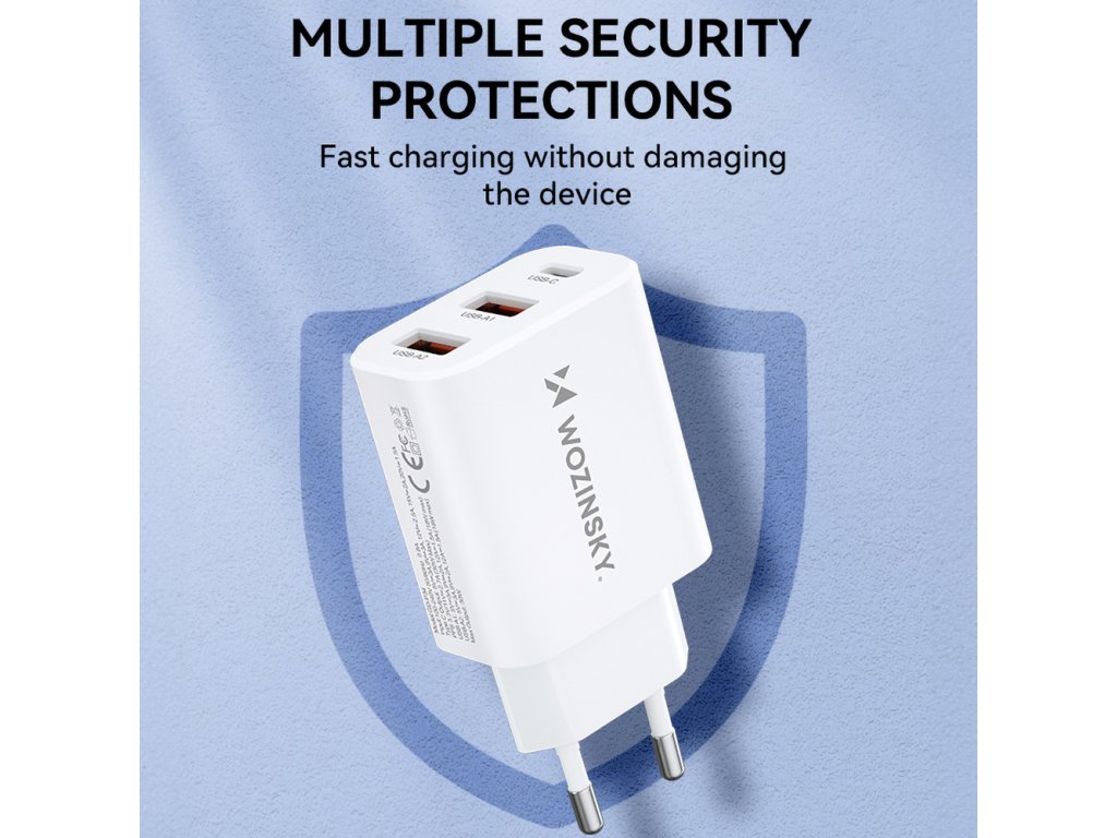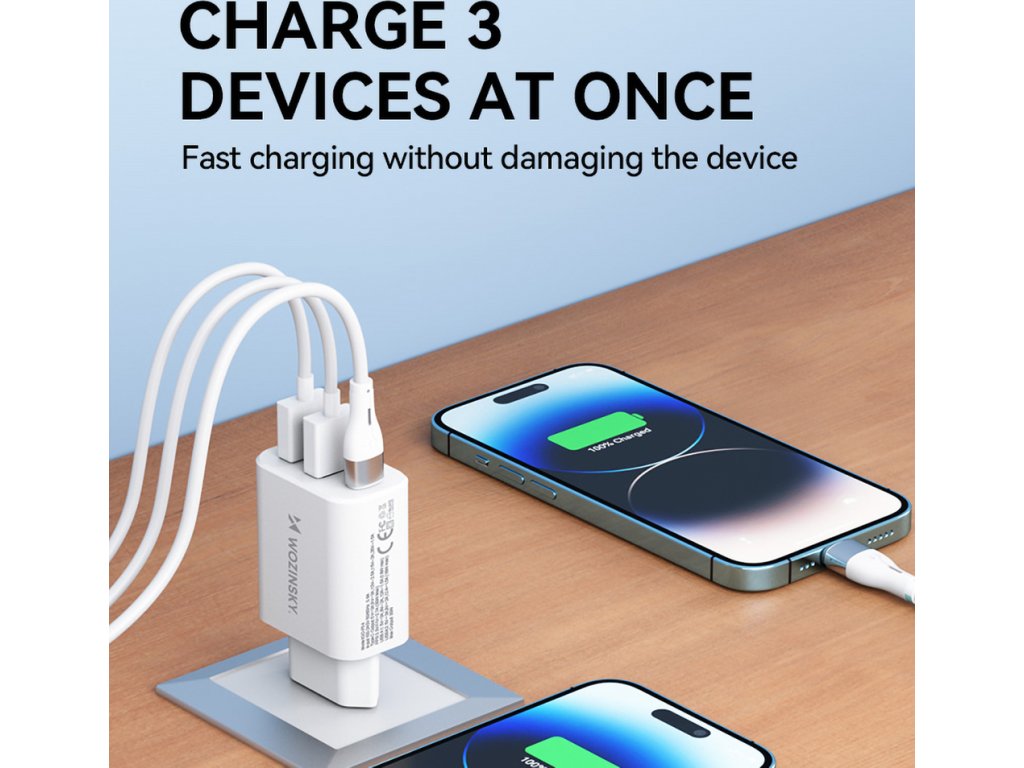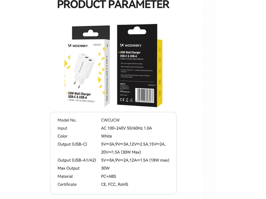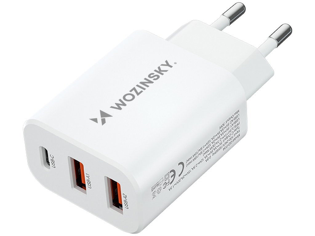 Nabíjačka Wozinsky CWCUCW 30W USB-C / 2 x USB-A do siete - biela