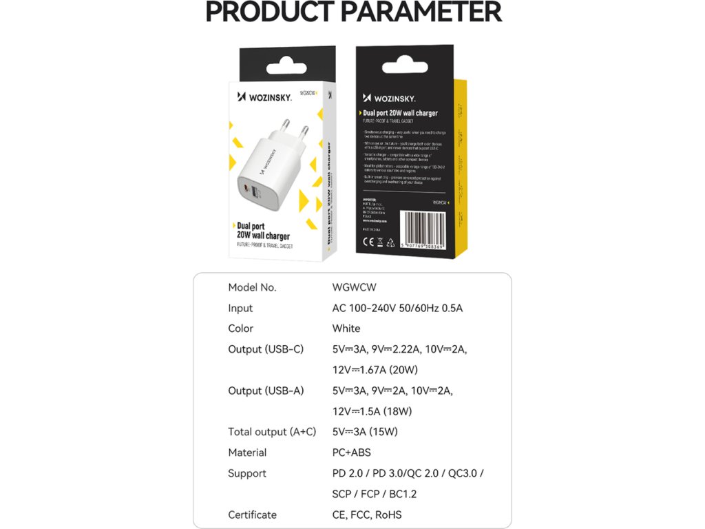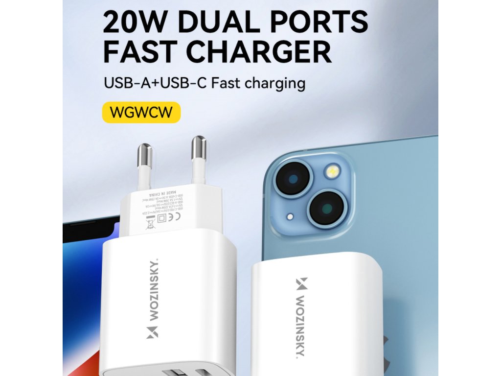 Wozinsky WGWCW USB-A USB-C 20W nabíjačka do siete - biela