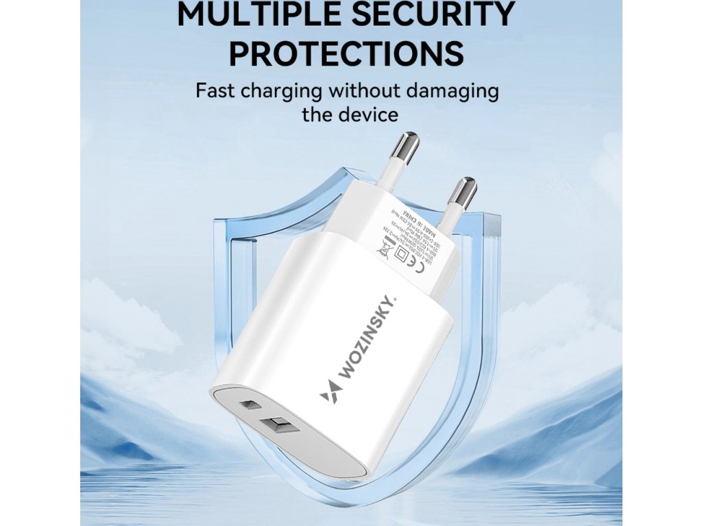 Nabíjačka do steny Wozinsky WGWCW je nevyhnutnosťou pre každého, kto potrebuje rýchly a efektívny spôsob nabíjania dvoch zariadení súčasne. Vďaka dvom USB portom (USB-A a USB-C) vám tento model umožňuje nabíjať smartfóny, tablety a menšie elektronické zariadenia. Nabíjačka je vyrobená s ohľadom na výkon a podporuje najrýchlejšie technológie nabíjania, vďaka čomu sú vaše zariadenia vždy pripravené na použitie. Malé rozmery zariadenia ho robia ideálnym na použitie doma aj na cestách. Bezpečnosť používania je zabezpečená certifikátmi CE a RoHS.