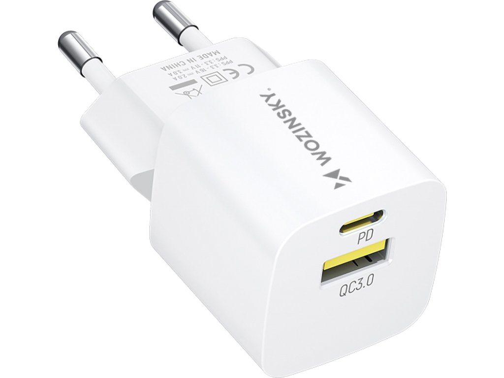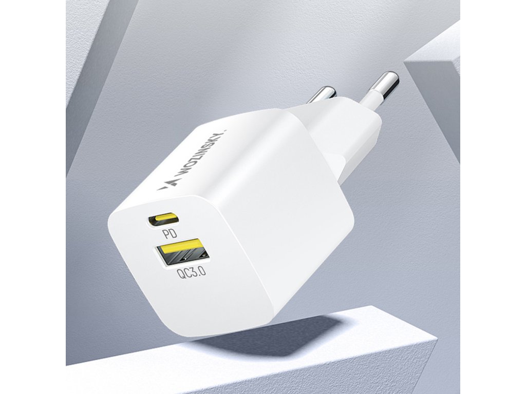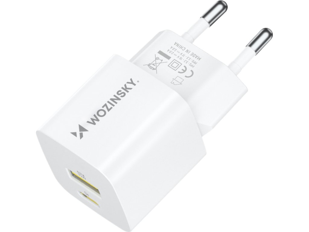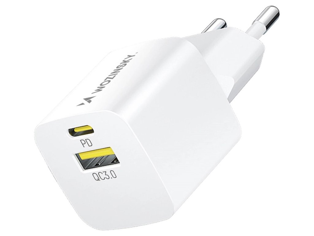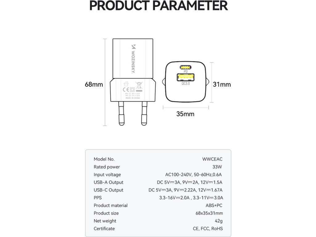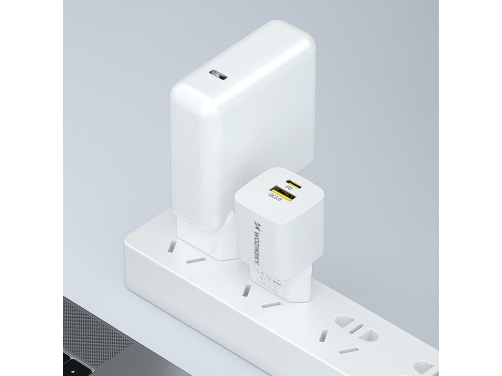 Nástenná nabíjačka Wozinsky WWCEAC s technológiou GaN s konektormi USB-A a USB-C s výkonom až 33W - biela