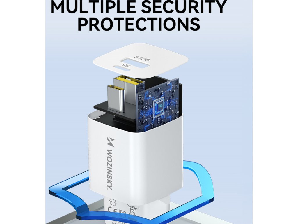 Nástenná nabíjačka Wozinsky WWCEAC využíva pokročilú technológiu GaN, ktorá zaisťuje nielen efektívnejšie, ale aj bezpečnejšie nabíjanie. Táto technológia minimalizuje riziko prehriatia zariadenia, čo je kľúčové pre udržanie dlhej životnosti elektroniky. Navyše je nabíjačka menšia a ľahšia ako štandardné modely.