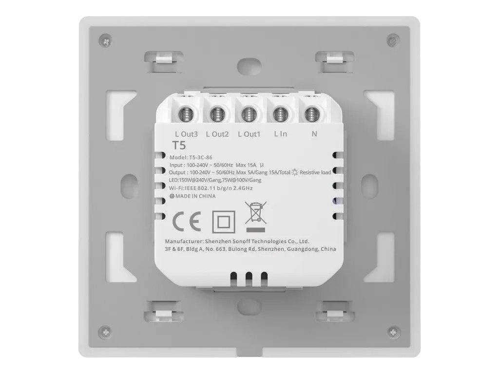 Vytvorte si múdru domácnosť so spoločnosťou Sonoff. TX T5 3C je trojkanálový nástenný vypínač, ktorý vám umožní pohodlne ovládať osvetlenie. Môžete ho tiež ovládať na diaľku pomocou hlasových príkazov alebo aplikácie eWeLink. Výrobok navyše ponúka funkciu časovača a farebné LED podsvietenie, ktoré si môžete prispôsobiť. Vzhľad vypínača môžete tiež prispôsobiť pomocou farebných panelov (nie sú súčasťou balenia).