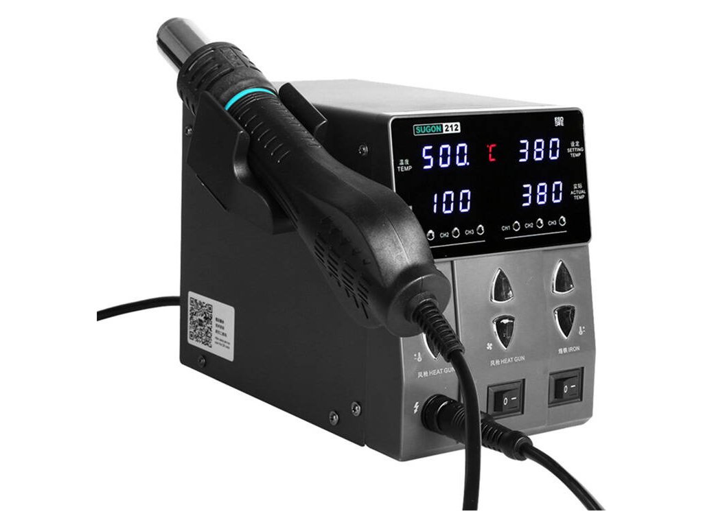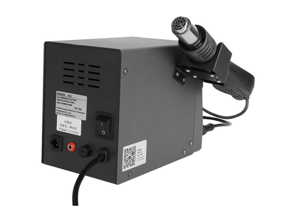 SUGON 212 je zariadenie 2 v 1, ktoré v sebe integruje teplovzdušnú stanicu a bankovú spájkovačku. To umožňuje komplexný prístup k opravám a montáži elektroniky, ktorý ponúka ako presné spájkovanie chronosúčiastok, tak rýchle odpájanie alebo montáž SMD súčiastok. Vďaka tomu je stanica ideálna pre servisy elektroniky, montážne dielne a domácich majstrov.