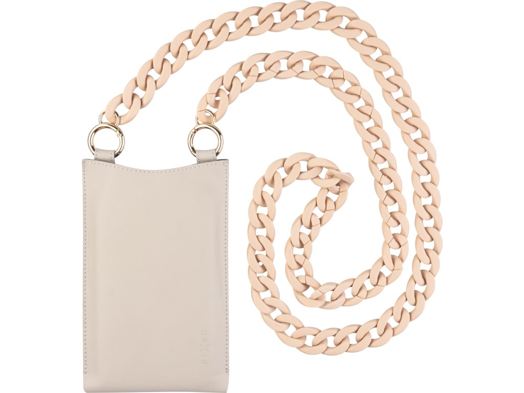 Kožená taštička cez rameno s vreckom FIXED Venezia pre 7" mobilné telefóny s béžovou retiazkou, krémová