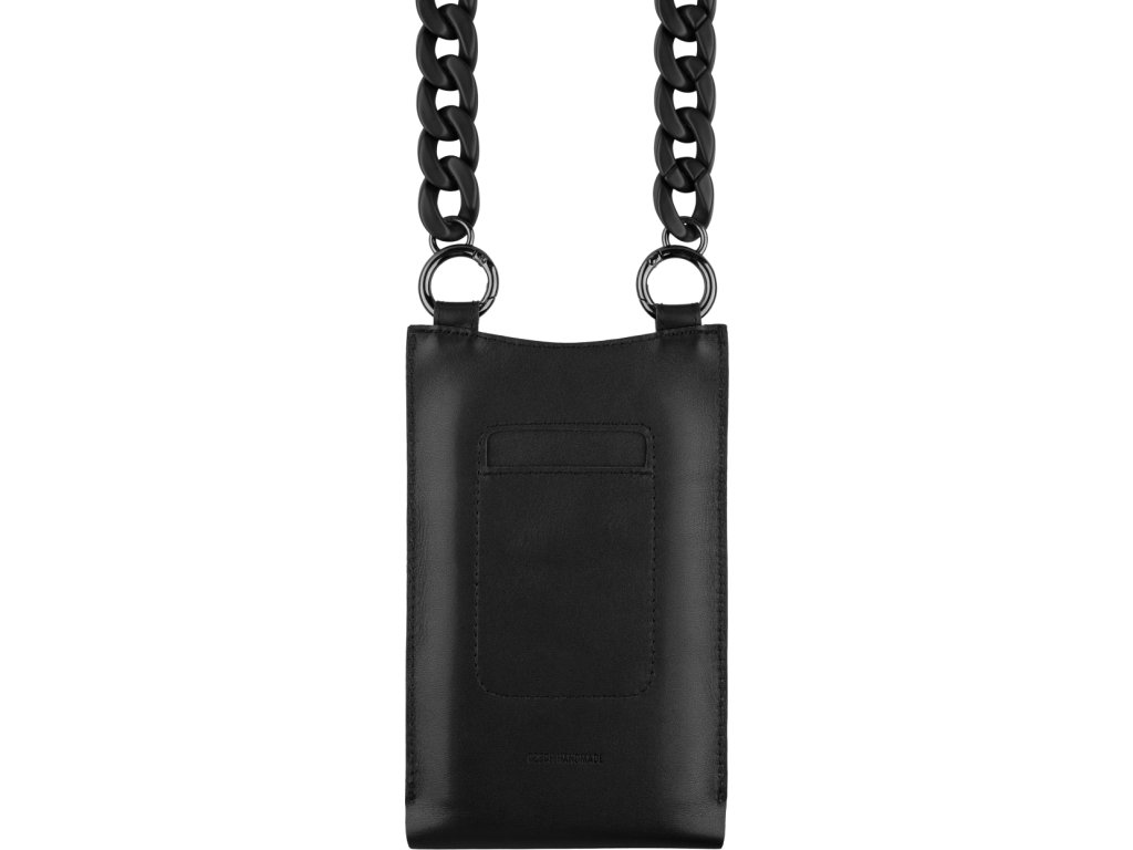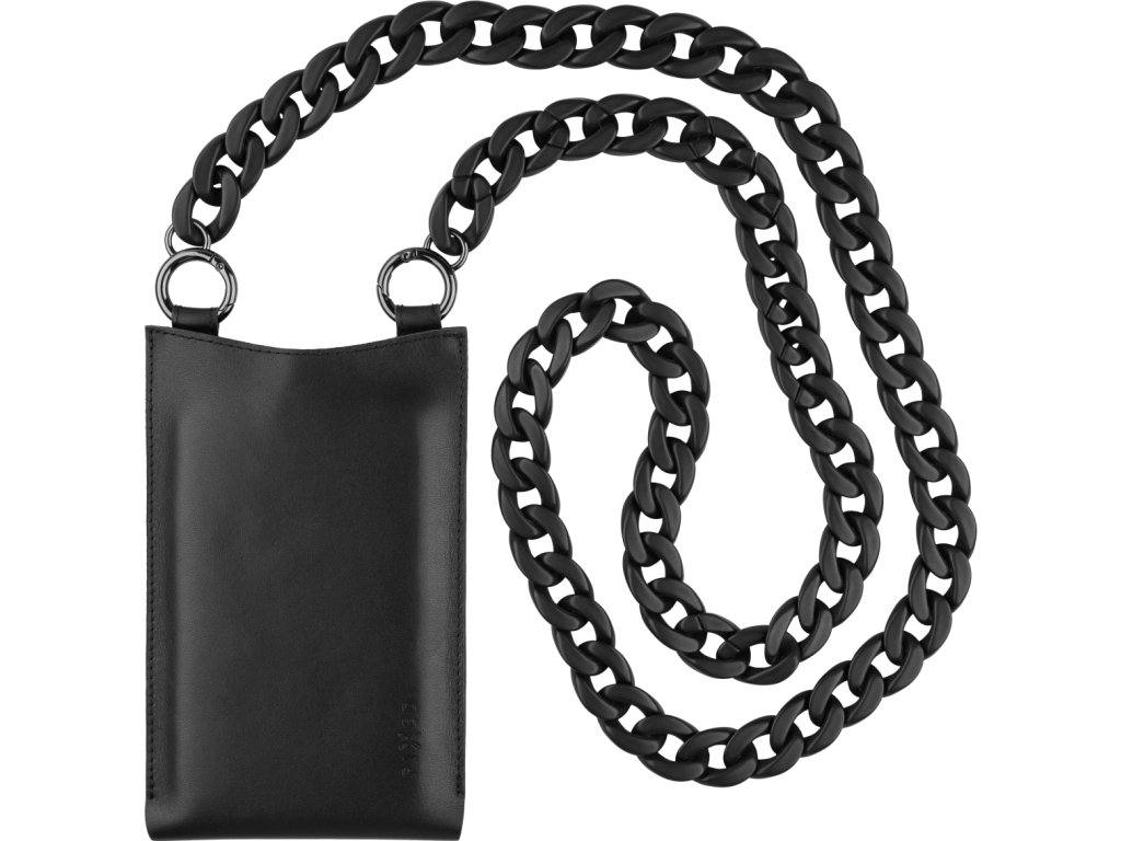 Kožená taštička cez rameno s vreckom FIXED Venezia pre 7" mobilné telefóny s čiernou retiazkou, čierna