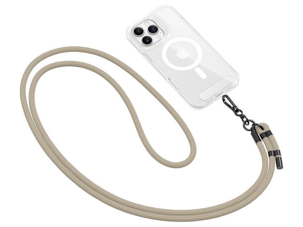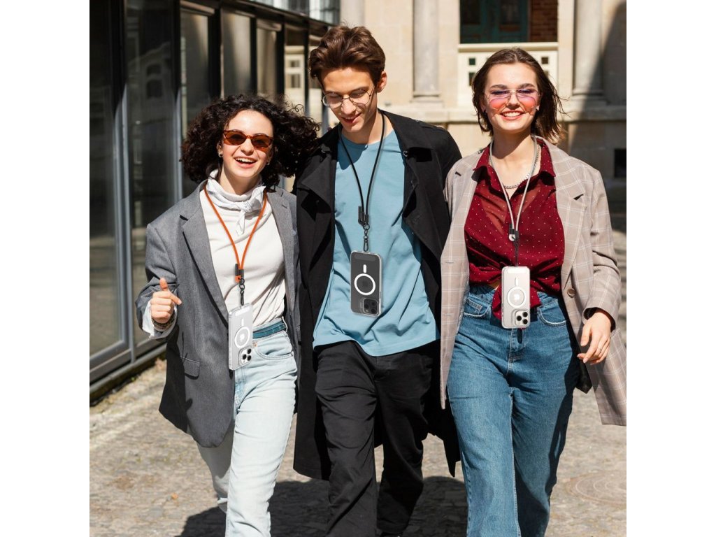 Vybavené adaptérom, ktorý je možné umiestniť na vnútornú stranu puzdra, umožňuje bezpečné a pohodlné nosenie telefónu. Vďaka nastaviteľnej dĺžke šnúrky si telefón môžeme zavesiť cez rameno alebo ho nosiť v ruke a prispôsobiť tak spôsob použitia našim potrebám.