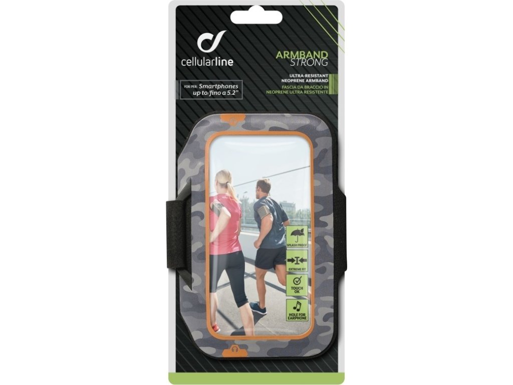 Športové puzdro CellularLine ARMBAND STRONG vyrobené z odolného neoprénu je určené predovšetkým pre všetkých outdoor nadšencov. Odolné prevedenie puzdra je ideálne do náročných podmienok, nezľakne sa ani nečakaného dažďa. Pomocou nastaviteľnej pásky si upravíte puzdro ARMBAND presne na mieru vašej paže, bude tak perfektne držať pri akejkoľvek aktivite. Čelná priehľadná stena puzdra umožní dotykové ovládanie displeja vloženého telefónu. Iste oceníte aj vnútorné oddelené vrecko na kľúče, možnosť pripojiť k telefónu v puzdre slúchadla a reflexné prvky pre bezpečný pohyb za zníženej viditeľnosti.