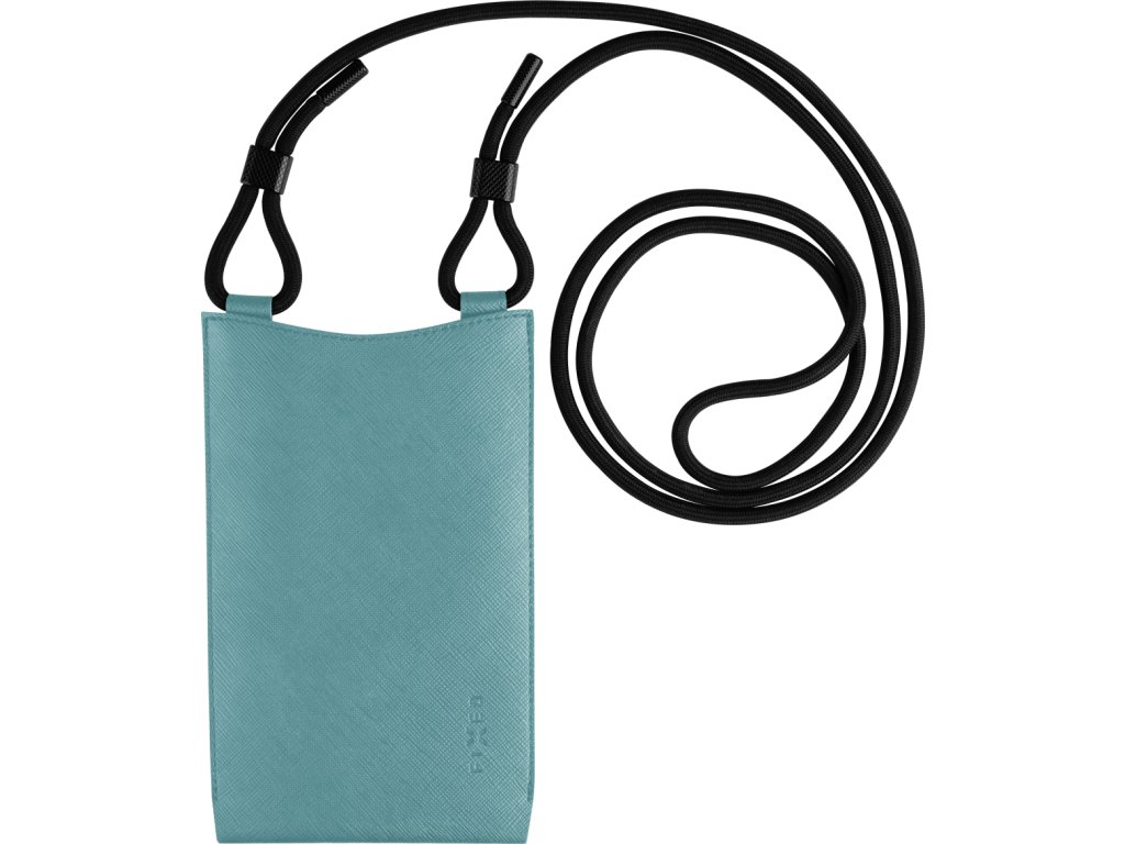 Taštička cez rameno s vreckom FIXED Verona s čiernou šnúrkou pre mobilné telefóny do 7", svetlo tyrkysová