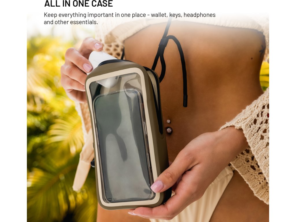 Vodeodolné puzdro na mobilný telefón FIXED Dry Case z hypalónu s certifikáciou IPX8, khaki