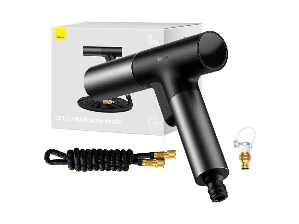 Vysokotlakový čistič / umývačka / vapka s tryskou na umývanie auta, kolesá, zalievanie a čistenie Baseus GF5 s hadicou 15 m (čierna)
