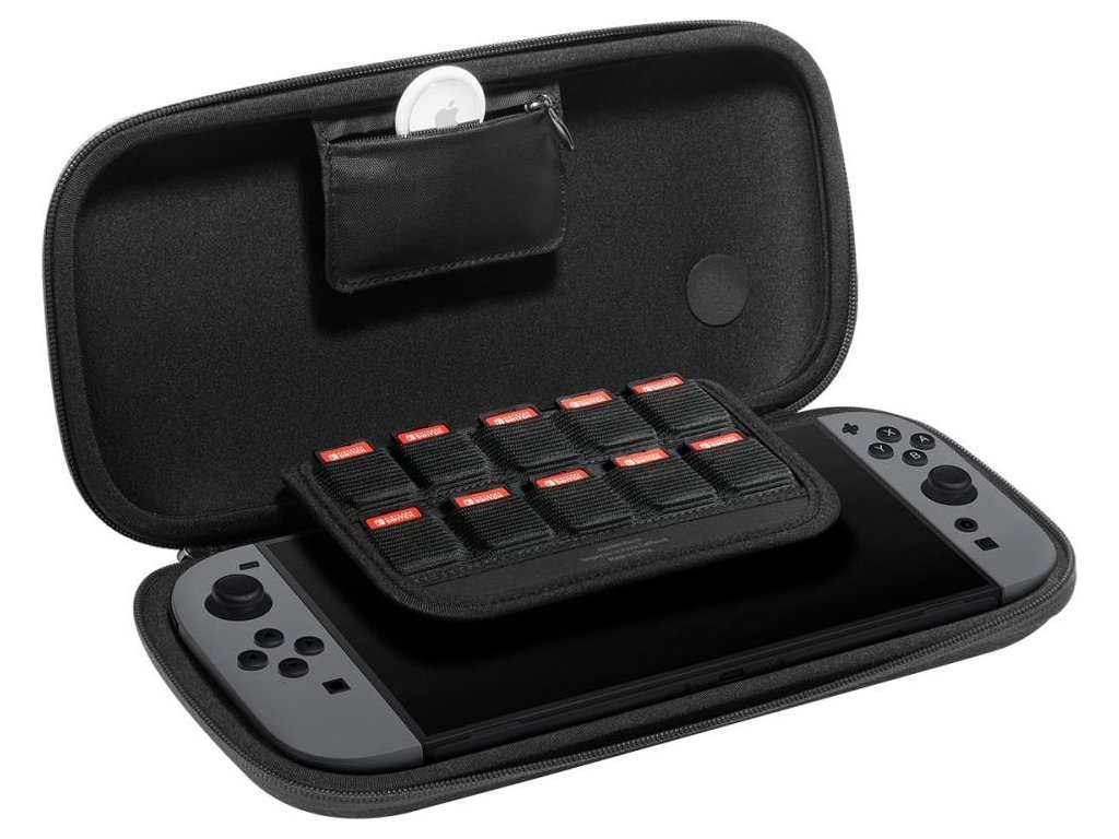 Funkčnosť puzdra podčiarkuje 10 vyhradených priehradok na herné karty a špeciálne vrecko na AirTag, vďaka ktorému vždy viete, kde sa vaša konzola nachádza.