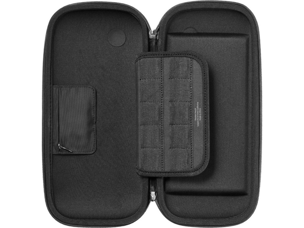 Puzdro puzdra je vyrobené z odolného EVA povlaku, ktorý účinne chráni konzolu pred nárazmi, zatiaľ čo vnútro je lemované jemným mikrovláknom, ktoré chráni obrazovku pred poškriabaním. Kovové zipsy zaručujú odolnosť a plynulé používanie, zatiaľ čo nylonový pásik s povrchovou úpravou z PU kože zaisťuje pohodlné nosenie.