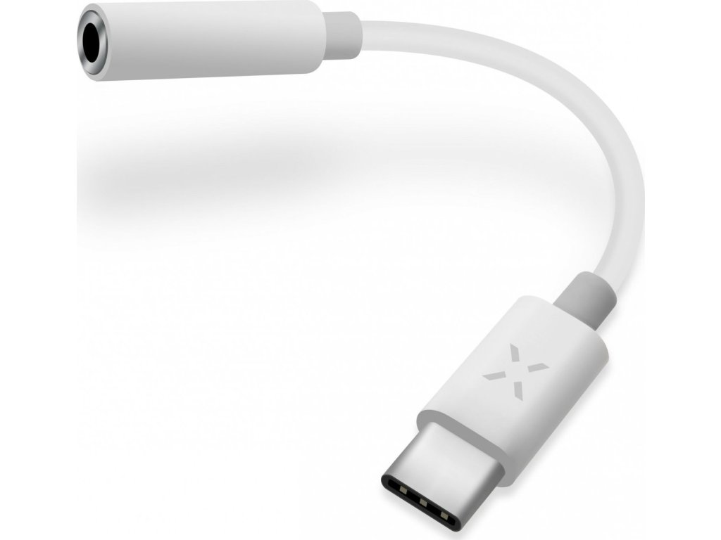Redukcia FIXED LINK pre pripojenie slúchadiel z USB-C na 3,5 mm jack s DAC chipom, biela