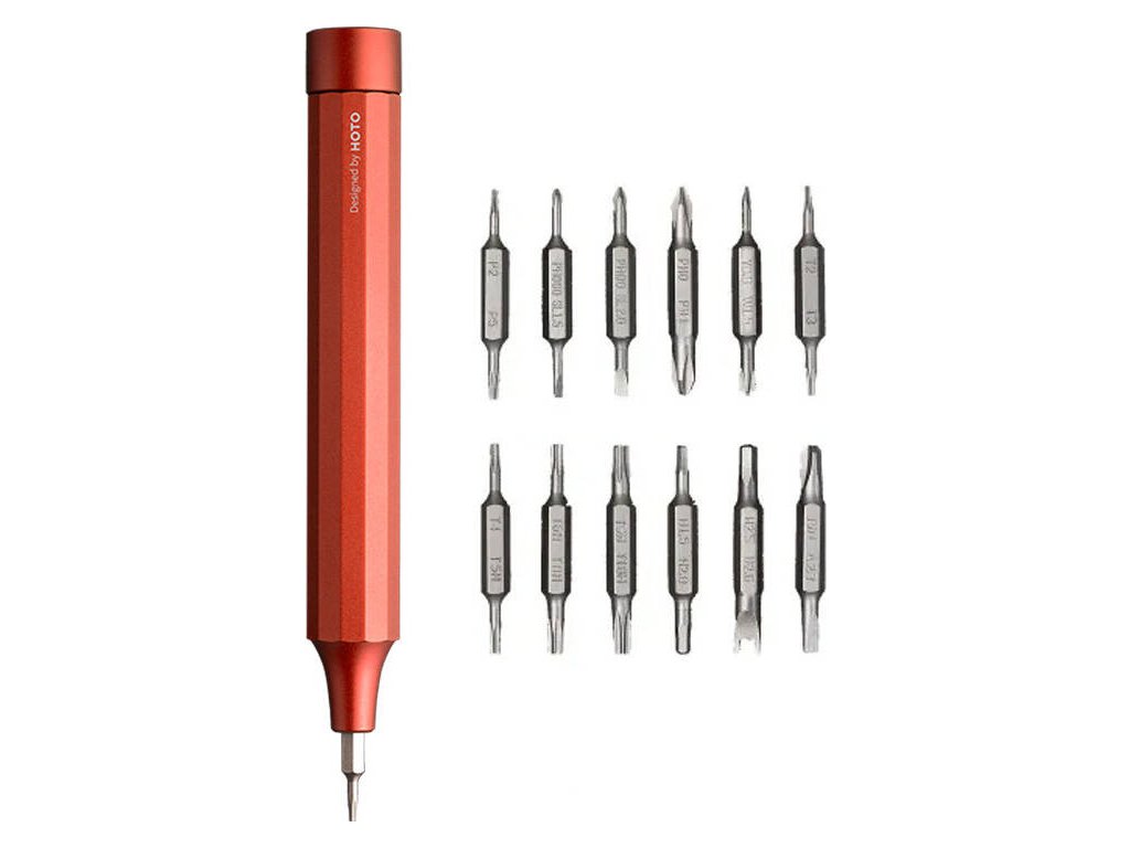 Hľadáte spoľahlivý nástroj pre drobné opravy alebo majstrovania? Presný skrutkovač HOTOA pre vás bude ideálny! Poskytne vám vysoký komfort aj pri dlhom používaní a navyše je mimoriadne odolný, pretože je vyrobený z kvalitnej hliníkovej zliatiny. Sada obsahuje 12 obojstranných bitov (24 typov), ktoré môžete bezpečne uložiť do magnetického boxu vo vnútri skrutkovača.